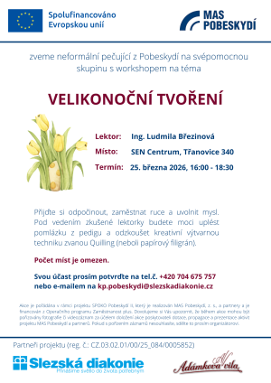 Svou účast potvrďte na tel.č.: 704 675 757 nebo e-mailu: kp.pobeskydi@slezskadiakonie.cz