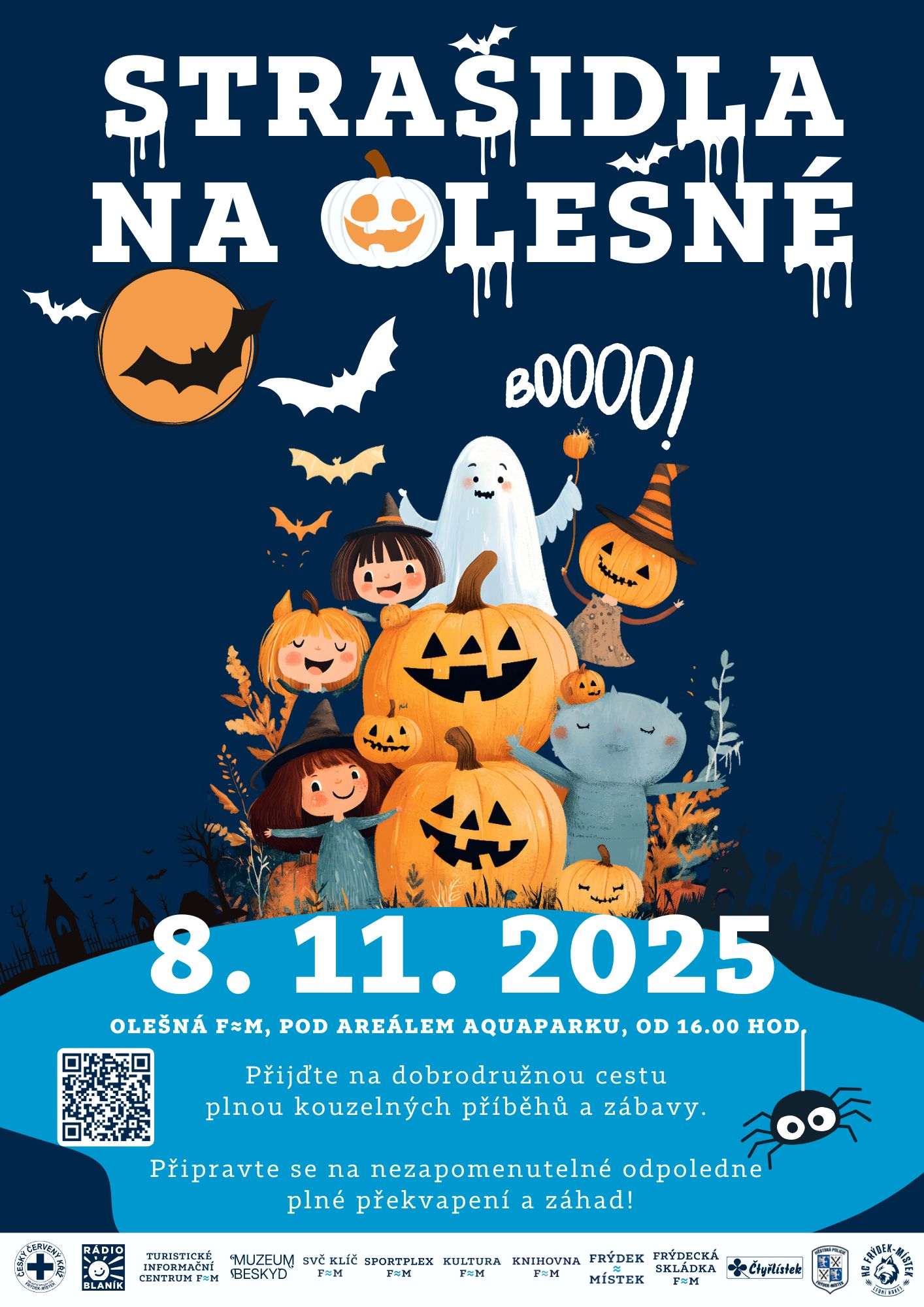 Vydejte se s námi na napínavou cestu plnou kouzelných příběhů a nečekaných zážitků! Připravte se na nezapomenutelné odpoledne plné tajemství, záhad a zábavy pro celou rodinu. Už v sobotu 8. listopadu 2025 ožije Olešná strašidelnými bytostmi, a vy s dětmi se stanete součástí tohoto dobrodružství!